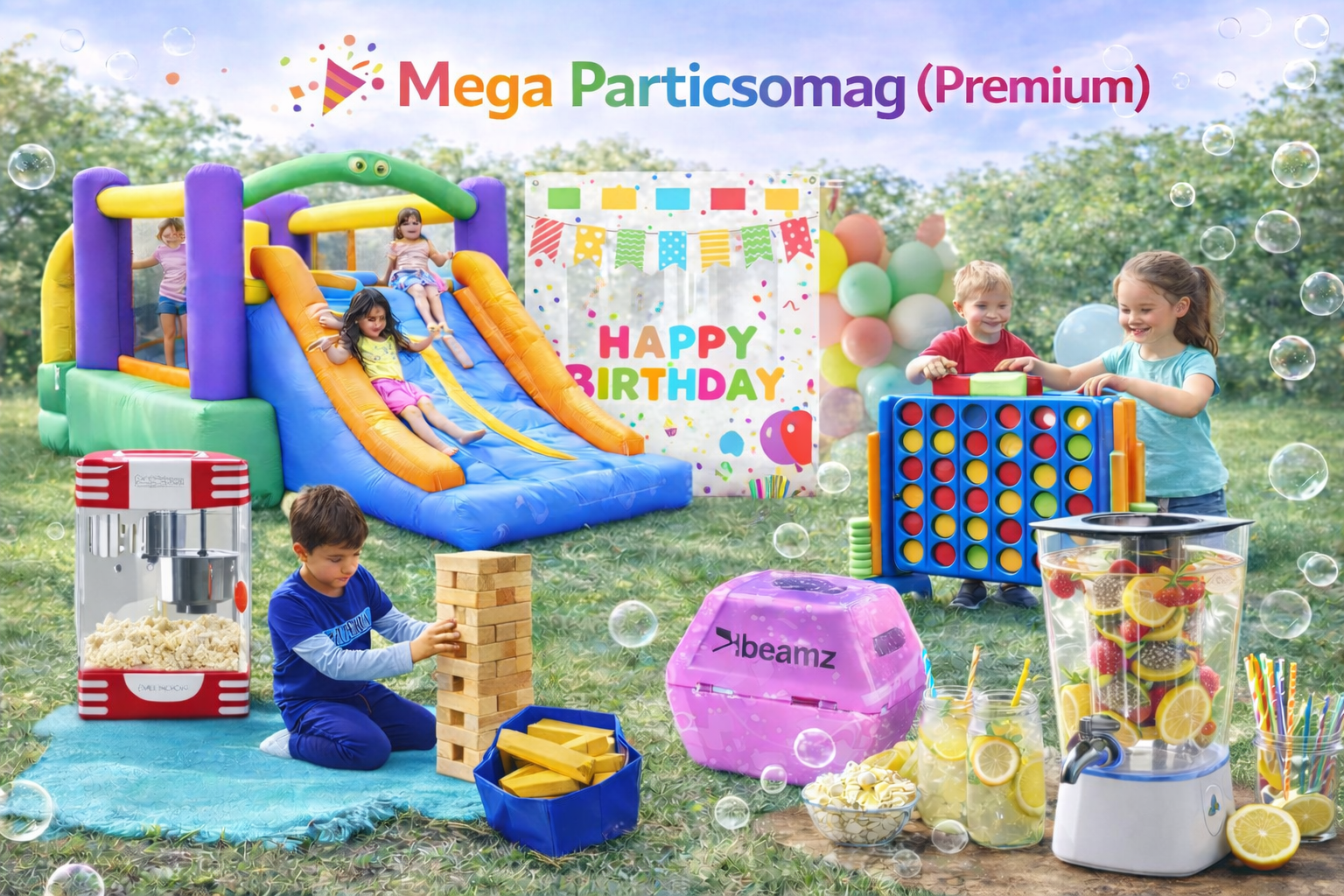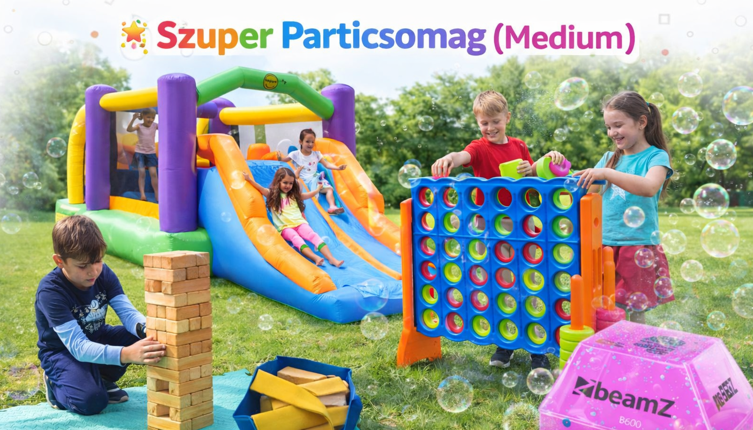 Ugrálóvár, buborékfújó gép, fotófal, popcorn gép, óriás játékok bérbeadása Győrben és környékén.